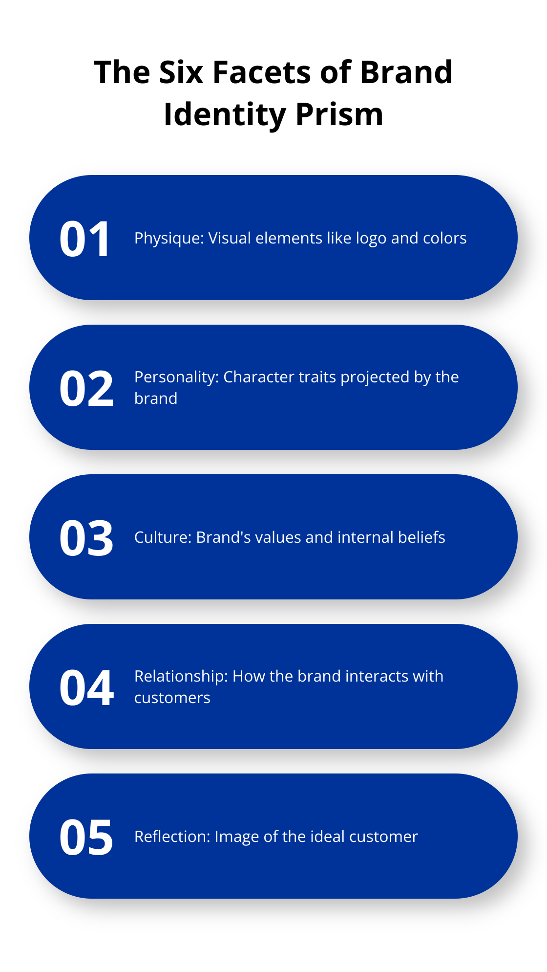 The Brand Identity Prism empowers businesses to create a strong, cohesive brand identity. Companies can develop a brand that resonates with their target audience by refining the six facets: physique, personality, culture, relationship, reflection, and self-image. Effective brand identity management requires constant attention and adaptation to stay relevant in a changing marketplace.
